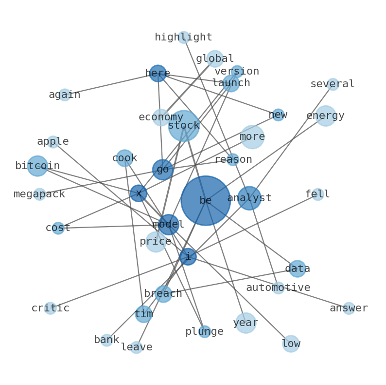 How much time have you spent trying to decide whether investing in Tesla? Many investors start with the dream of being free. They expect to find on the stock market an option to have time to develop their own interests and hobbies. That is, a way to escape a 9 to 5 job. However, investment is complex and investors end up spending whole days (and nights) trying to figure out which the right stock to invest is. The dream of stock investing becomes the nightmare of facing infinity amounts of information. As a solution, we programmed an artificial intelligence that reads the whole internet and the uses natural language processing and vectorizers to summarize the information. Usually, the AI reads several hundred pages and summarize it to a short document. This document presents our results. We found that the most common words in the internet about Tesla are: Tesla, stock, …
