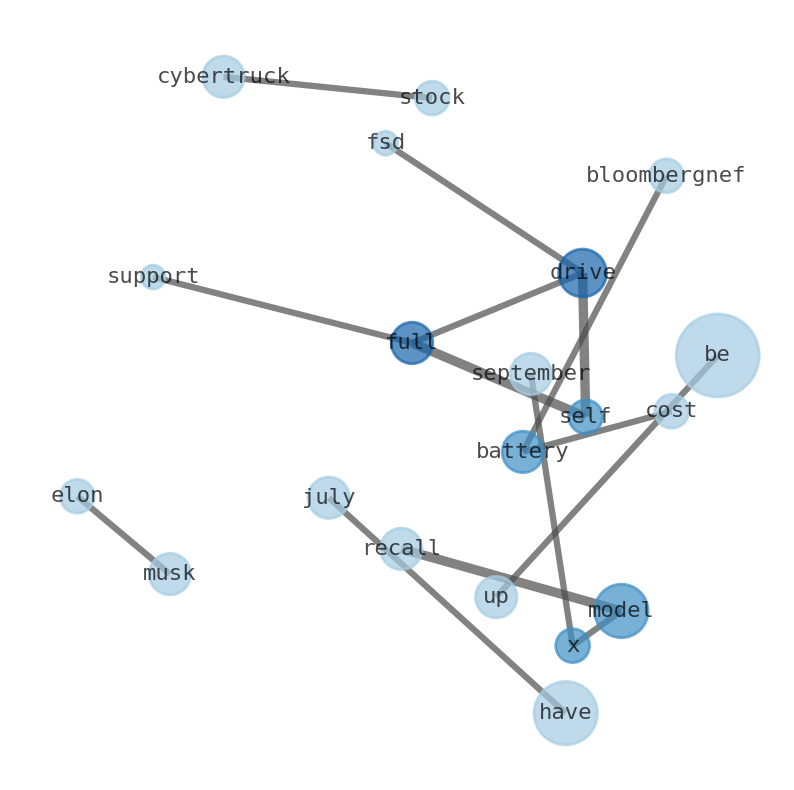 This document will help you to evaluate Tesla without reading an infinite amount of sources. Relying only on stock quotes or prices to make investment decisions is a mistake. Analyzing and observing stock charts, highs and lows and other numerical data does not allow to evaluate the real value of a company. Stock quotes and prices are the result of underlying characteristics of a company and of events and news happening around them. For this reason, investing must be based on information, not numbers. As a solution, we programmed an artificial intelligence that reads the whole internet and the uses natural language processing and vectorizers to summarize the information. Usually, the AI reads several hundred pages and summarize it to a short document. This document presents our results. We found that the most common words in the internet about Tesla are: Tesla, Teslas, end, range, expect, Musk, first, and the …