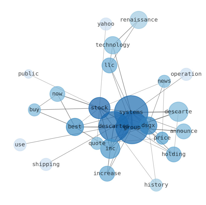 This document will help you to evaluate The Descartes Systems Group without reading an infinite amount of sources. Relying only on stock quotes or prices to make investment decisions is a mistake. Analyzing and observing stock charts, highs and lows and other numerical data does not allow to evaluate the real value of a company. Stock quotes and prices are the result of underlying characteristics of a company and of events and news happening around them. For this reason, investing must be based on information, not numbers. As a solution, we programmed an artificial intelligence that reads the whole internet and the uses natural language processing and vectorizers to summarize the information. Usually, the AI reads several hundred pages and summarize it to a short document. This document presents our results. We found that the most common words in the internet about The Descartes Systems Group are: Systems, Group, Descartes, Descarte, Best, Renaissance, Inc, and the most common words in the summary are: descartes, market, chain, supply, solution, system, group, . One of the sentences in the summary was: Public Employees Retirement Association of Colorado recently made headlines for their significant holdings in the Descarte Systems Group.. Other searches related to this term that the AI found were: stockmarketlive, livestock, stockmarketforbeginners, thestockmarket, stockmarkettoday, stockmarkettrading, stockmarketstocks, todaystockmarket, thestockmarket, marketnews, stockmarketnews, whatisstockmarket, usstockmarket, stockmarketopen. #descartes #market #chain #supply #solution #system #group.