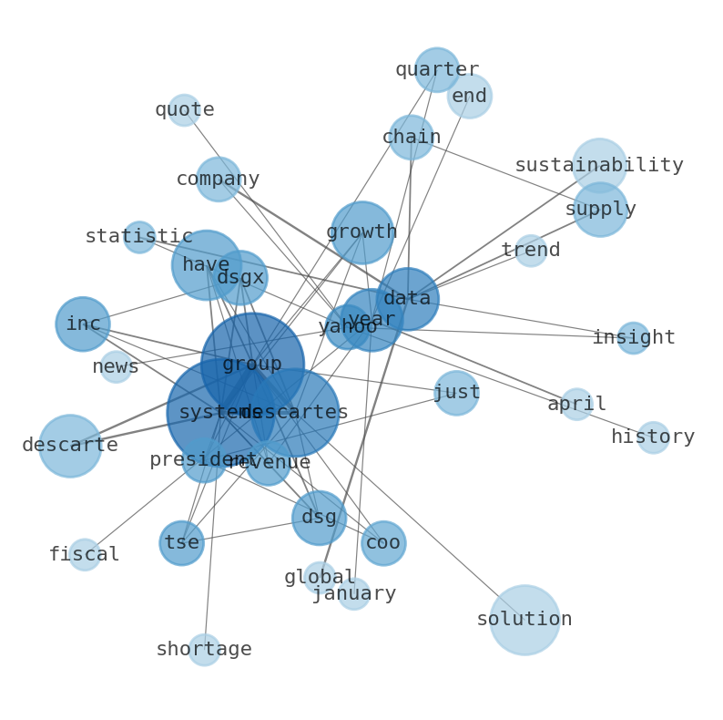 This document will help you to evaluate The Descartes Systems Group without reading an infinite amount of sources. Relying only on stock quotes or prices to make investment decisions is a mistake. Analyzing and observing stock charts, highs and lows and other numerical data does not allow to evaluate the real value of a company. Stock quotes and prices are the result of underlying characteristics of a company and of events and news happening around them. For this reason, investing must be based on information, not numbers. As a solution, we programmed an artificial intelligence that reads the whole internet and the uses natural language processing and vectorizers to summarize the information. Usually, the AI reads several hundred pages and summarize it to a short document. This document presents our results. We found that the most common words in the internet about The Descartes Systems Group are: Systems, Group, Descartes, solution, growth, Descarte, Data, and the most common words in the summary are: descartes, market, chain, supply, solution, system, group, . One of the sentences in the summary was: Descartes Systems Group shed 4.7% this week as yearly returns fall more in line with earnings growth. Other searches related to this term that the AI found were: stockmarketlive, livestock, stockmarketforbeginners, thestockmarket, stockmarkettoday, stockmarkettrading, stockmarketstocks, todaystockmarket, thestockmarket, marketnews, stockmarketnews, whatisstockmarket, usstockmarket, stockmarketopen. #descartes #market #chain #supply #solution #system #group.