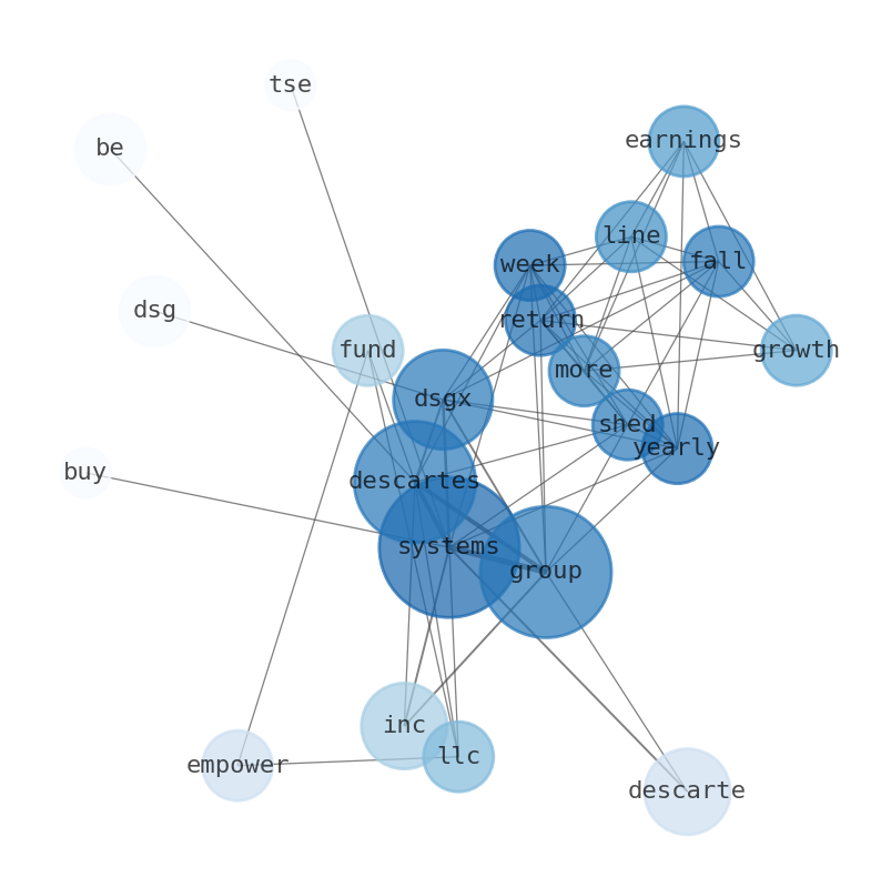 This document will help you to evaluate The Descartes Systems Group without reading an infinite amount of sources. Relying only on stock quotes or prices to make investment decisions is a mistake. Analyzing and observing stock charts, highs and lows and other numerical data does not allow to evaluate the real value of a company. Stock quotes and prices are the result of underlying characteristics of a company and of events and news happening around them. For this reason, investing must be based on information, not numbers. As a solution, we programmed an artificial intelligence that reads the whole internet and the uses natural language processing and vectorizers to summarize the information. Usually, the AI reads several hundred pages and summarize it to a short document. This document presents our results. We found that the most common words in the internet about The Descartes Systems Group are: Systems, Group, Descartes, stock, DSGX, Descarte, Empowered, and the most common words in the summary are: new, share, open, click, window, market, twitter, . One of the sentences in the summary was: Empowered funds llc invests in the descartes systems group inc., a global leader in logistic solutions - best stocks.. Other searches related to this term that the AI found were: stockmarketlive, livestock, stockmarketforbeginners, thestockmarket, stockmarkettoday, stockmarkettrading, stockmarketstocks, todaystockmarket, thestockmarket, marketnews, stockmarketnews, whatisstockmarket, usstockmarket, stockmarketopen. #new #share #open #click #window #market #twitter.