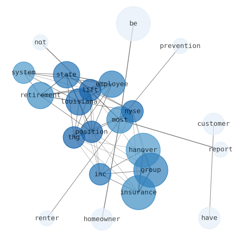 How much time have you spent trying to decide whether investing in The Hanover Insurance Group? Many investors start with the dream of being free. They expect to find on the stock market an option to have time to develop their own interests and hobbies. That is, a way to escape a 9 to 5 job. However, investment is complex and investors end up spending whole days (and nights) trying to figure out which the right stock to invest is. The dream of stock investing becomes the nightmare of facing infinity amounts of information. As a solution, we programmed an artificial intelligence that reads the whole internet and the uses natural language processing and vectorizers to summarize the information. Usually, the AI reads several hundred pages and summarize it to a short document. This document presents our results. We found that the most common words in the internet about The …