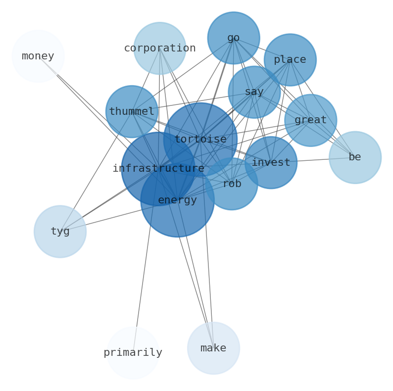 The game is changing. There is a new strategy to evaluate Tortoise Energy Infrastructure fundamental value, possible risks and most salient advantages. Investors have traditionally relied in reading large amounts of text to evaluate the fundamental value of a stock or company. However, the development of Artificial Intelligence (AI) tools is modifying the way investments are evaluated in markets. Today, machine learning, natural language processing and bigdata allow making this process automatic, reducing large amounts of text to the elements that have a higher activation in a neural network. We programmed an artificial intelligence that reads the whole internet and the uses natural language processing and vectorizers to summarize the information. Usually, the AI reads several hundred pages and summarize it to a short document. This document presents our results. We found that the most common words in the internet about Tortoise Energy Infrastructure are: Energy, infrastructure, great, place, invest, go, say, and the most common words in the summary are: energy, tortoise, best, solar, year, fund, credit, . One of the sentences in the summary was: Tortoise Energy Infrastructure Corporation (TYG) makes money primarily through its investments.. Other searches related to this term that the AI found were: stockmarketlive, livestock, stockmarketforbeginners, thestockmarket, stockmarkettoday, stockmarkettrading, stockmarketstocks, todaystockmarket, thestockmarket, marketnews, stockmarketnews, whatisstockmarket, usstockmarket, stockmarketopen. #energy #tortoise #best #solar #year #fund #credit.