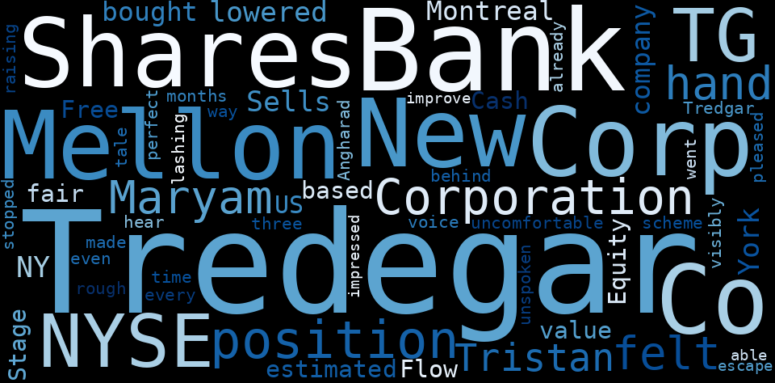 How much time have you spent trying to decide whether investing in Tredegar? Many investors start with the dream of being free. They expect to find on the stock market an option to have time to develop their own interests and hobbies. That is, a way to escape a 9 to 5 job. However, investment is complex and investors end up spending whole days (and nights) trying to figure out which the right stock to invest is. The dream of stock investing becomes the nightmare of facing infinity amounts of information. As a solution, we programmed an artificial intelligence that reads the whole internet and the uses natural language processing and vectorizers to summarize the information. Usually, the AI reads several hundred pages and summarize it to a short document. This document presents our results. We found that the most common words in the internet about Tredegar are: Tredegar, Bank, …