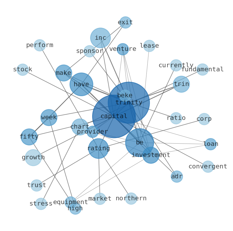 The game is changing. There is a new strategy to evaluate Trinity Capital fundamental value, possible risks and most salient advantages. Investors have traditionally relied in reading large amounts of text to evaluate the fundamental value of a stock or company. However, the development of Artificial Intelligence (AI) tools is modifying the way investments are evaluated in markets. Today, machine learning, natural language processing and bigdata allow making this process automatic, reducing large amounts of text to the elements that have a higher activation in a neural network. We programmed an artificial intelligence that reads the whole internet and the uses natural language processing and vectorizers to summarize the information. Usually, the AI reads several hundred pages and summarize it to a short document. This document presents our results. We found that the most common words in the internet about Trinity Capital are: Trinity, Capital, growth, make, TRIN, Inc, Chart, …