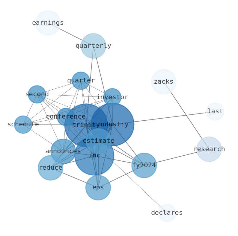 The game is changing. There is a new strategy to evaluate Trinity Industries fundamental value, possible risks and most salient advantages. Investors have traditionally relied in reading large amounts of text to evaluate the fundamental value of a stock or company. However, the development of Artificial Intelligence (AI) tools is modifying the way investments are evaluated in markets. Today, machine learning, natural language processing and bigdata allow making this process automatic, reducing large amounts of text to the elements that have a higher activation in a neural network. We programmed an artificial intelligence that reads the whole internet and the uses natural language processing and vectorizers to summarize the information. Usually, the AI reads several hundred pages and summarize it to a short document. This document presents our results. We found that the most common words in the internet about Trinity Industries are: Trinity, Industries, Inc, quarterly, reduce, announces, second, …