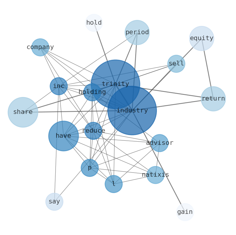 Are looking for the most relevant information about Trinity Industries? Investor spend a lot of time searching for information to make investment decisions in Trinity Industries. This task is often burdensome and consumes huge amounts of free time. It also leads to mistakes due to fatigue and bounded rationality. As a solution, we programmed an artificial intelligence that reads the whole internet and the uses natural language processing and vectorizers to summarize the information. Usually, the AI reads several hundred pages and summarize it to a short document. This document presents our results. We found that the most common words in the internet about Trinity Industries are: Trinity, Industries, share, period, return, equity, Natixis, and the most common words in the summary are: trinity, industry, ho, service, market, report, news, . One of the sentences in the summary was: Trinity Industries had a net margin of 3.20% and a return on equity of 7.20%.. Other searches related to this term that the AI found were: stockmarketlive, livestock, stockmarketforbeginners, thestockmarket, stockmarkettoday, stockmarkettrading, stockmarketstocks, todaystockmarket, thestockmarket, marketnews, stockmarketnews, whatisstockmarket, usstockmarket, stockmarketopen. #trinity #industry #ho #service #market #report #news.