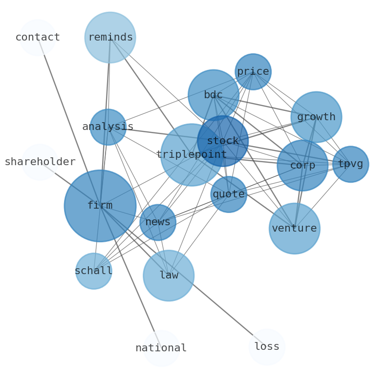 This document will help you to evaluate TriplePoint Venture Growth BDC without reading an infinite amount of sources. Relying only on stock quotes or prices to make investment decisions is a mistake. Analyzing and observing stock charts, highs and lows and other numerical data does not allow to evaluate the real value of a company. Stock quotes and prices are the result of underlying characteristics of a company and of events and news happening around them. For this reason, investing must be based on information, not numbers. As a solution, we programmed an artificial intelligence that reads the whole internet and the uses natural language processing and vectorizers to summarize the information. Usually, the AI reads several hundred pages and summarize it to a short document. This document presents our results. We found that the most common words in the internet about TriplePoint Venture Growth BDC are: TriplePoint, Firm, Venture, Growth, BDC, Corp, Stock, and the most common words in the summary are: capital, bank, venture, group, insurance, financial, management, . One of the sentences in the summary was: The Schalls Law Firm, a national shareholder rights litigation firm, reminds purchasers of securities of TriplePoint.. Other searches related to this term that the AI found were: stockmarketlive, livestock, stockmarketforbeginners, thestockmarket, stockmarkettoday, stockmarkettrading, stockmarketstocks, todaystockmarket, thestockmarket, marketnews, stockmarketnews, whatisstockmarket, usstockmarket, stockmarketopen. #capital #bank #venture #group #insurance #financial #management.