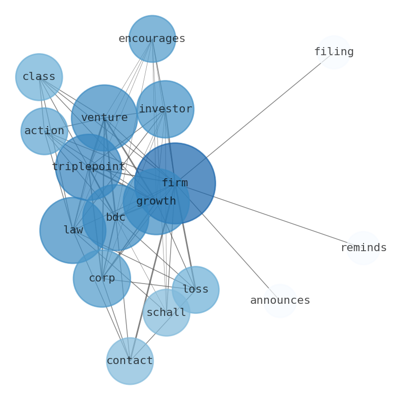 The game is changing. There is a new strategy to evaluate TriplePoint Venture Growth BDC fundamental value, possible risks and most salient advantages. Investors have traditionally relied in reading large amounts of text to evaluate the fundamental value of a stock or company. However, the development of Artificial Intelligence (AI) tools is modifying the way investments are evaluated in markets. Today, machine learning, natural language processing and bigdata allow making this process automatic, reducing large amounts of text to the elements that have a higher activation in a neural network. We programmed an artificial intelligence that reads the whole internet and the uses natural language processing and vectorizers to summarize the information. Usually, the AI reads several hundred pages and summarize it to a short document. This document presents our results. We found that the most common words in the internet about TriplePoint Venture Growth BDC are: Law, Firm, investor, …