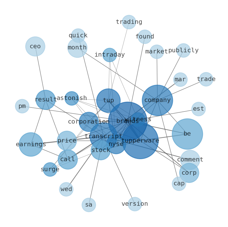 How much time have you spent trying to decide whether investing in Tupperware Brands? Many investors start with the dream of being free. They expect to find on the stock market an option to have time to develop their own interests and hobbies. That is, a way to escape a 9 to 5 job. However, investment is complex and investors end up spending whole days (and nights) trying to figure out which the right stock to invest is. The dream of stock investing becomes the nightmare of facing infinity amounts of information. As a solution, we programmed an artificial intelligence that reads the whole internet and the uses natural language processing and vectorizers to summarize the information. Usually, the AI reads several hundred pages and summarize it to a short document. This document presents our results. We found that the most common words in the internet about Tupperware Brands are: Brands, Tupperware, company, TUP, Corporation, NYSE, trade, and the most common words in the summary are: tupperware, brand, stock, job, tup, transcript, price, . One of the sentences in the summary was: TupperWare Brands stock price is 1.77 USD today.. Other searches related to this term that the AI found were: stockmarketlive, livestock, stockmarketforbeginners, thestockmarket, stockmarkettoday, stockmarkettrading, stockmarketstocks, todaystockmarket, thestockmarket, marketnews, stockmarketnews, whatisstockmarket, usstockmarket, stockmarketopen. #tupperware #brand #stock #job #tup #transcript #price.