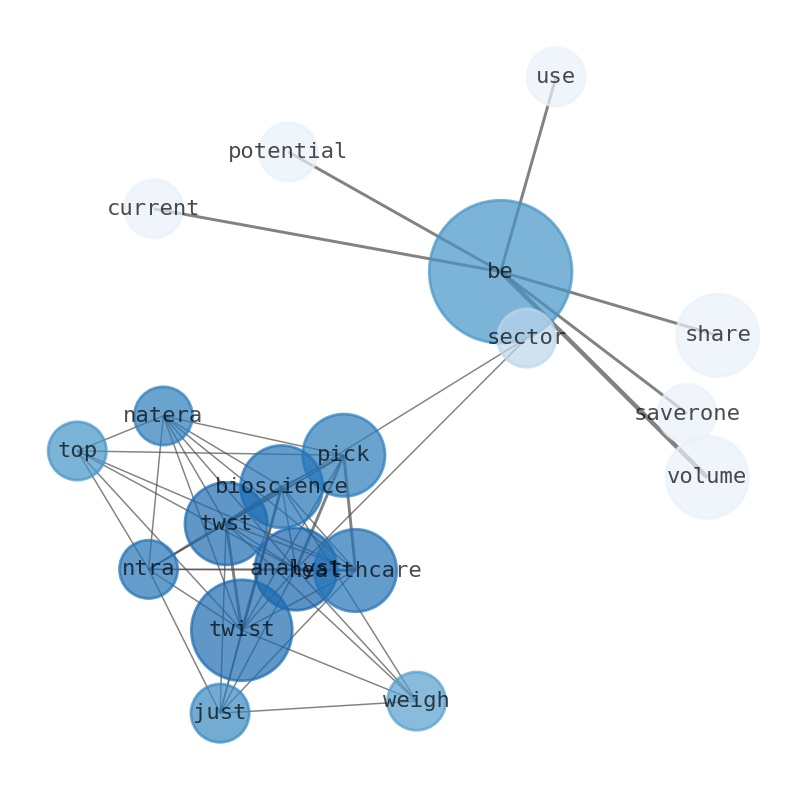 Analysts Top Healthcare Picks: Natera (NTRA), Twist Bioscience (TWST) Analysts just weighed in on 3 Healthcare sector picks with bullish sentiments. See todays best-performing stocks on TipRanks. Shares of Twist Bioscience (TWST -1.70%) were sinking 17.5% as of 11:18 a.m. ET on Dec 12th, 2023 the market cap of the company was reported to be $1.62 billion. The current volume of 1.3 million shares is 2251.1% of Saverone 2014s average full-day volume over the la Benzinga 11-17 12:31 ET. The biggest reason why Twist is currently valued at $1.9 billion is the potential to use their silicon DNA synthesis platform for the discovery of new drugs.