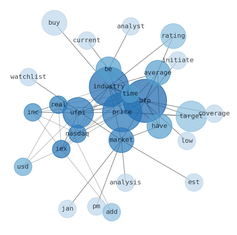 The game is changing. There is a new strategy to evaluate UFP Industries fundamental value, possible risks and most salient advantages. Investors have traditionally relied in reading large amounts of text to evaluate the fundamental value of a stock or company. However, the development of Artificial Intelligence (AI) tools is modifying the way investments are evaluated in markets. Today, machine learning, natural language processing and bigdata allow making this process automatic, reducing large amounts of text to the elements that have a higher activation in a neural network. We programmed an artificial intelligence that reads the whole internet and the uses natural language processing and vectorizers to summarize the information. Usually, the AI reads several hundred pages and summarize it to a short document. This document presents our results. We found that the most common words in the internet about UFP Industries are: UFP, price, Industries, UFPI, target, Market, average, and the most common words in the summary are: objbsf, ufp, industry, job, stock, bloomberg, technology, . One of the sentences in the summary was: UFP industries has 61.81 million shares outstanding.. Other searches related to this term that the AI found were: stockmarketlive, livestock, stockmarketforbeginners, thestockmarket, stockmarkettoday, stockmarkettrading, stockmarketstocks, todaystockmarket, thestockmarket, marketnews, stockmarketnews, whatisstockmarket, usstockmarket, stockmarketopen. #objbsf #ufp #industry #job #stock #bloomberg #technology.