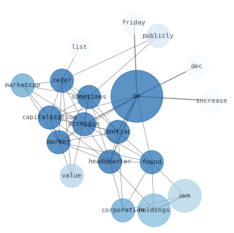 This document will help you to evaluate UWM Holdings without reading an infinite amount of sources. Relying only on stock quotes or prices to make investment decisions is a mistake. Analyzing and observing stock charts, highs and lows and other numerical data does not allow to evaluate the real value of a company. Stock quotes and prices are the result of underlying characteristics of a company and of events and news happening around them. For this reason, investing must be based on information, not numbers. As a solution, we programmed an artificial intelligence that reads the whole internet and the uses natural language processing and vectorizers to summarize the information. Usually, the AI reads several hundred pages and summarize it to a short document. This document presents our results. We found that the most common words in the internet about UWM Holdings are: UWM, Holdings, UWMC, Corporation, found, headquartered, Pontiac, and the most common words in the summary are: holding, perform, inc, change, uwm, stock, ticker, . One of the sentences in the summary was: UWM Holdings Corp (UWMC) stock is trading at $5.62 as of 11:54 AM on Friday, Dec 1, an increase of $0.16, or 2.93% from the previous closing price of $5.46. Other searches related to this term that the AI found were: stockmarketlive, livestock, stockmarketforbeginners, thestockmarket, stockmarkettoday, stockmarkettrading, stockmarketstocks, todaystockmarket, thestockmarket, marketnews, stockmarketnews, whatisstockmarket, usstockmarket, stockmarketopen. #holding #perform #inc #change #uwm #stock #ticker.