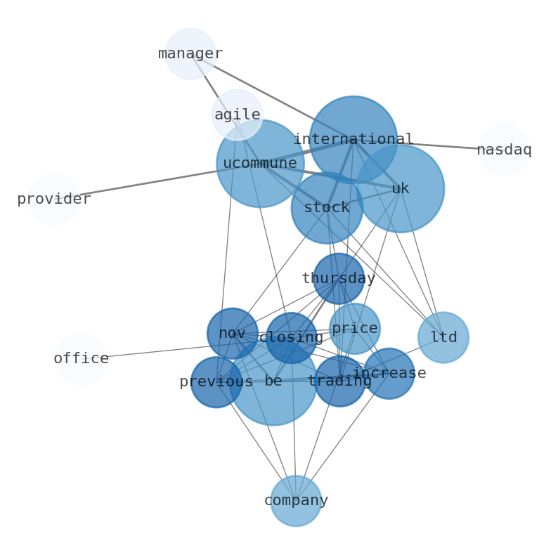 This document will help you to evaluate Ucommune International without reading an infinite amount of sources. Relying only on stock quotes or prices to make investment decisions is a mistake. Analyzing and observing stock charts, highs and lows and other numerical data does not allow to evaluate the real value of a company. Stock quotes and prices are the result of underlying characteristics of a company and of events and news happening around them. For this reason, investing must be based on information, not numbers. As a solution, we programmed an artificial intelligence that reads the whole internet and the uses natural language processing and vectorizers to summarize the information. Usually, the AI reads several hundred pages and summarize it to a short document. This document presents our results. We found that the most common words in the internet about Ucommune International are: Ucommune, International, UK, stock, Ltd, trading, AM, and the most common words in the summary are: international, stock, ucommune, best, perform, change, etf, . One of the sentences in the summary was: 19.314K / 14.913K Mkt Cap 1.921M Day Range 3.400 - 3.879.. Other searches related to this term that the AI found were: stockmarketlive, livestock, stockmarketforbeginners, thestockmarket, stockmarkettoday, stockmarkettrading, stockmarketstocks, todaystockmarket, thestockmarket, marketnews, stockmarketnews, whatisstockmarket, usstockmarket, stockmarketopen. #international #stock #ucommune #best #perform #change #etf.