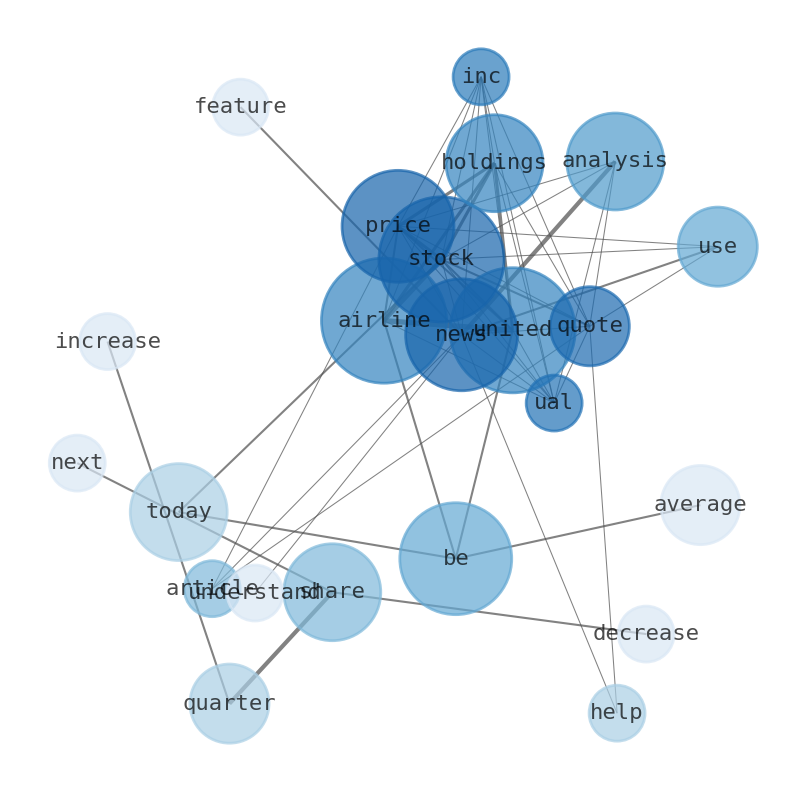 This document will help you to evaluate United Airlines Holdings without reading an infinite amount of sources. Relying only on stock quotes or prices to make investment decisions is a mistake. Analyzing and observing stock charts, highs and lows and other numerical data does not allow to evaluate the real value of a company. Stock quotes and prices are the result of underlying characteristics of a company and of events and news happening around them. For this reason, investing must be based on information, not numbers. As a solution, we programmed an artificial intelligence that reads the whole internet and the uses natural language processing and vectorizers to summarize the information. Usually, the AI reads several hundred pages and summarize it to a short document. This document presents our results. We found that the most common words in the internet about United Airlines Holdings are: United, Airlines, stock, price, Holdings, news, today, and the most common words in the summary are: airline, united, unite, stock, air, flight, job, . One of the sentences in the summary was: United Airlines has on average historically risen by 13.6% based on the past 17 years of stock performance.. Other searches related to this term that the AI found were: stockmarketlive, livestock, stockmarketforbeginners, thestockmarket, stockmarkettoday, stockmarkettrading, stockmarketstocks, todaystockmarket, thestockmarket, marketnews, stockmarketnews, whatisstockmarket, usstockmarket, stockmarketopen. #airline #united #unite #stock #air #flight #job.