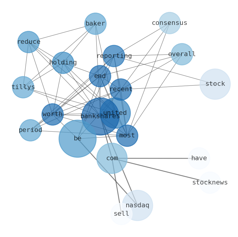 This document will help you to evaluate United Bankshares without reading an infinite amount of sources. Relying only on stock quotes or prices to make investment decisions is a mistake. Analyzing and observing stock charts, highs and lows and other numerical data does not allow to evaluate the real value of a company. Stock quotes and prices are the result of underlying characteristics of a company and of events and news happening around them. For this reason, investing must be based on information, not numbers. As a solution, we programmed an artificial intelligence that reads the whole internet and the uses natural language processing and vectorizers to summarize the information. Usually, the AI reads several hundred pages and summarize it to a short document. This document presents our results. We found that the most common words in the internet about United Bankshares are: United, Bankshares, stock, Baker, Tillys, reduce, holding, and the most common words in the summary are: bank, credit, union, federal, first, state, united, . One of the sentences in the summary was: United Bankshares (nasdaq:ubsi) upgraded to “sell” by stocknews.com - defense world.com. Other searches related to this term that the AI found were: stockmarketlive, livestock, stockmarketforbeginners, thestockmarket, stockmarkettoday, stockmarkettrading, stockmarketstocks, todaystockmarket, thestockmarket, marketnews, stockmarketnews, whatisstockmarket, usstockmarket, stockmarketopen. #bank #credit #union #federal #first #state #united.