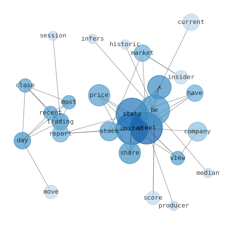 Are looking for the most relevant information about United States Steel? Investor spend a lot of time searching for information to make investment decisions in United States Steel. This task is often burdensome and consumes huge amounts of free time. It also leads to mistakes due to fatigue and bounded rationality. As a solution, we programmed an artificial intelligence that reads the whole internet and the uses natural language processing and vectorizers to summarize the information. Usually, the AI reads several hundred pages and summarize it to a short document. This document presents our results. We found that the most common words in the internet about United States Steel are: United, States, Steel, X, price, share, company, and the most common words in the summary are: steel, state, united, stock, price, company, best, . One of the sentences in the summary was: United States Steel (X) Stock Sinks As Market …