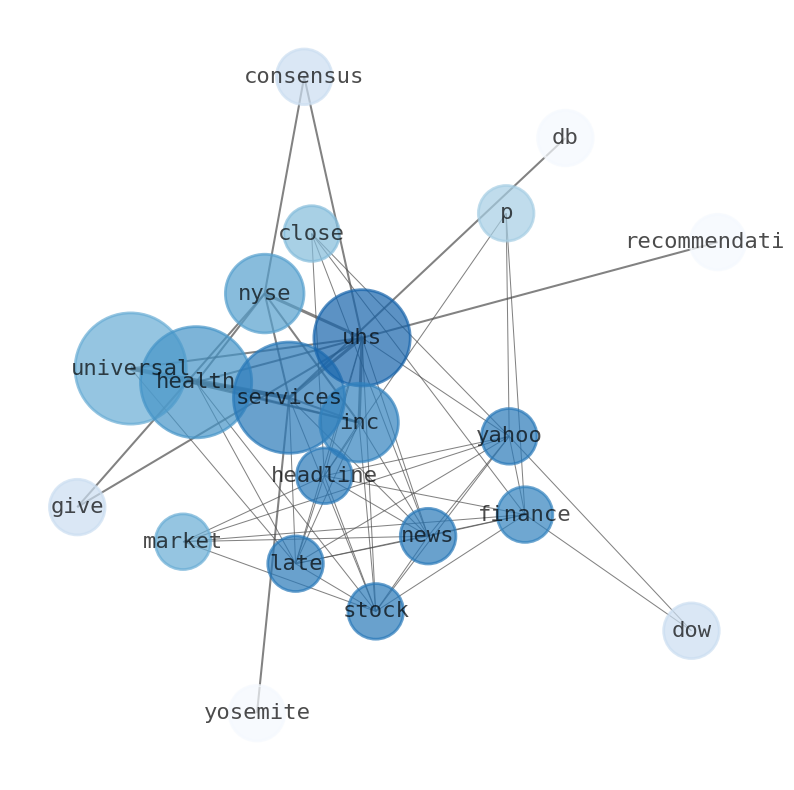 Are looking for the most relevant information about Universal Health Services? Investor spend a lot of time searching for information to make investment decisions in Universal Health Services. This task is often burdensome and consumes huge amounts of free time. It also leads to mistakes due to fatigue and bounded rationality. As a solution, we programmed an artificial intelligence that reads the whole internet and the uses natural language processing and vectorizers to summarize the information. Usually, the AI reads several hundred pages and summarize it to a short document. This document presents our results. We found that the most common words in the internet about Universal Health Services are: Universal, Health, Services, Inc, uhs, late, stock, and the most common words in the summary are: health, care, healthcare, insurance, service, system, state, . One of the sentences in the summary was: (nyse:uhs) (NYse:Uhs) given consensus recommendation of “hold” by …
