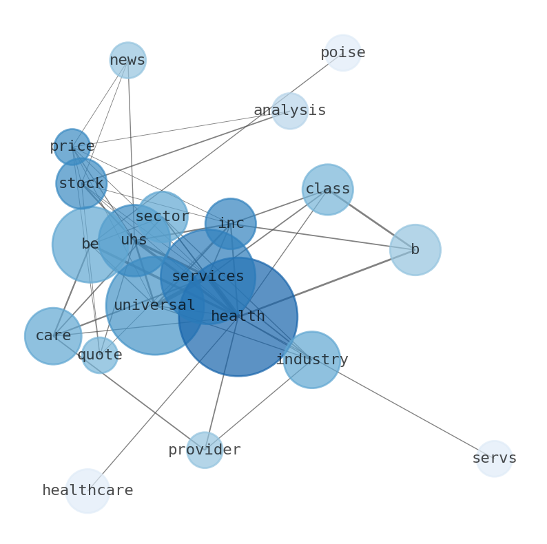 Are looking for the most relevant information about Universal Health Services? Investor spend a lot of time searching for information to make investment decisions in Universal Health Services. This task is often burdensome and consumes huge amounts of free time. It also leads to mistakes due to fatigue and bounded rationality. As a solution, we programmed an artificial intelligence that reads the whole internet and the uses natural language processing and vectorizers to summarize the information. Usually, the AI reads several hundred pages and summarize it to a short document. This document presents our results. We found that the most common words in the internet about Universal Health Services are: Health, Universal, Services, UHS, Care, industry, Class, and the most common words in the summary are: health, service, universal, uhs, stock, inc, care, . One of the sentences in the summary was: Health Services is in the Health Care sector …