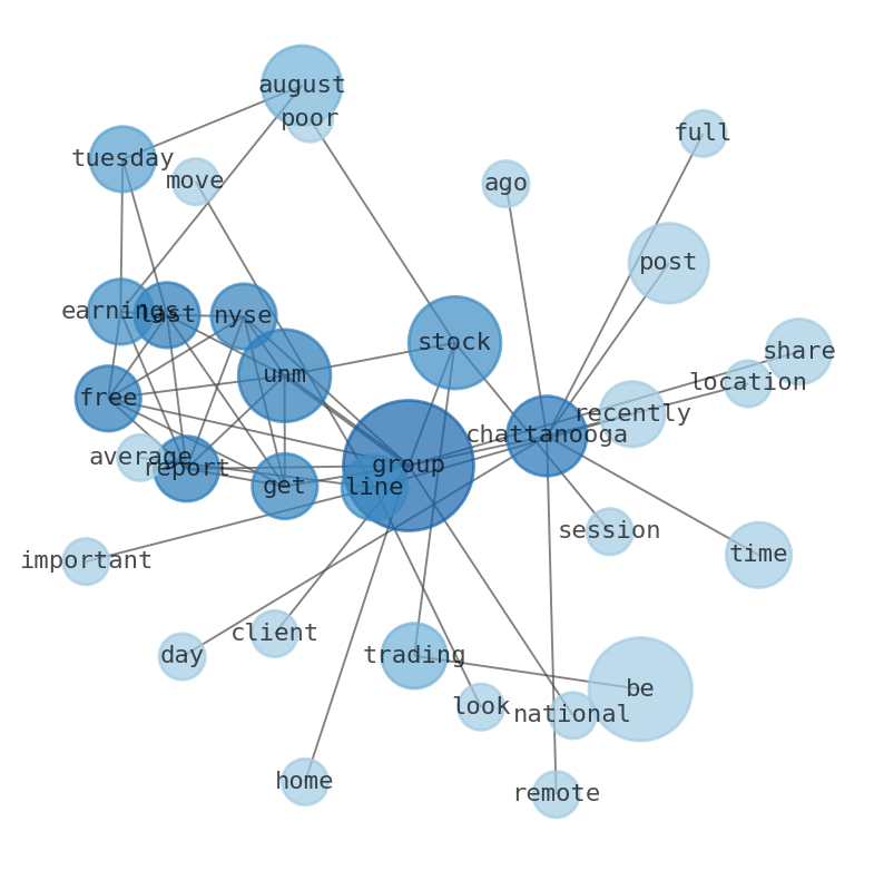 The game is changing. There is a new strategy to evaluate Unum Group fundamental value, possible risks and most salient advantages. Investors have traditionally relied in reading large amounts of text to evaluate the fundamental value of a stock or company. However, the development of Artificial Intelligence (AI) tools is modifying the way investments are evaluated in markets. Today, machine learning, natural language processing and bigdata allow making this process automatic, reducing large amounts of text to the elements that have a higher activation in a neural network. We programmed an artificial intelligence that reads the whole internet and the uses natural language processing and vectorizers to summarize the information. Usually, the AI reads several hundred pages and summarize it to a short document. This document presents our results. We found that the most common words in the internet about Unum Group are: Unum, Group, Chattanooga, post, August, NYSEUNM, Get, …