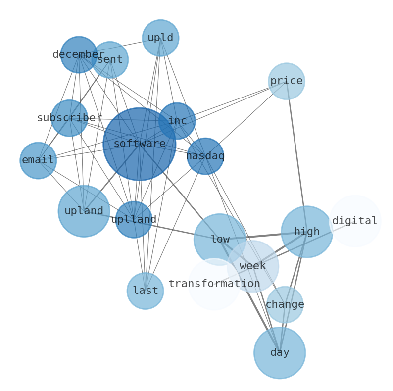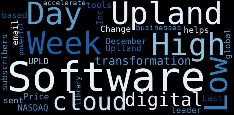 Are looking for the most relevant information about Upland Software? Investor spend a lot of time searching for information to make investment decisions in Upland Software. This task is often burdensome and consumes huge amounts of free time. It also leads to mistakes due to fatigue and bounded rationality. As a solution, we programmed an artificial intelligence that reads the whole internet and the uses natural language processing and vectorizers to summarize the information. Usually, the AI reads several hundred pages and summarize it to a short document. This document presents our results. We found that the most common words in the internet about Upland Software are: Software, Upland, Day, High, Week, Low, digital, and the most common words in the summary are: software, market, upland, employee, voice, voe, management, . One of the sentences in the summary was: It helps global businesses accelerate digital transformation with a powerful cloud …