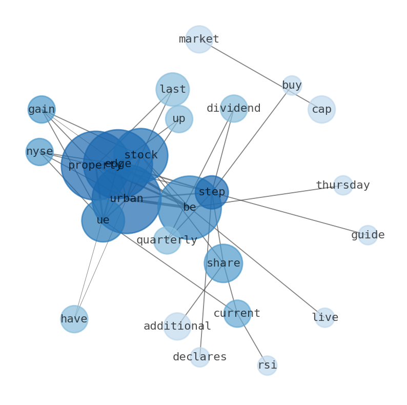 The game is changing. There is a new strategy to evaluate Urban Edge Properties fundamental value, possible risks and most salient advantages. Investors have traditionally relied in reading large amounts of text to evaluate the fundamental value of a stock or company. However, the development of Artificial Intelligence (AI) tools is modifying the way investments are evaluated in markets. Today, machine learning, natural language processing and bigdata allow making this process automatic, reducing large amounts of text to the elements that have a higher activation in a neural network. We programmed an artificial intelligence that reads the whole internet and the uses natural language processing and vectorizers to summarize the information. Usually, the AI reads several hundred pages and summarize it to a short document. This document presents our results. We found that the most common words in the internet about Urban Edge Properties are: Urban, Edge, Properties, stock, UE, …