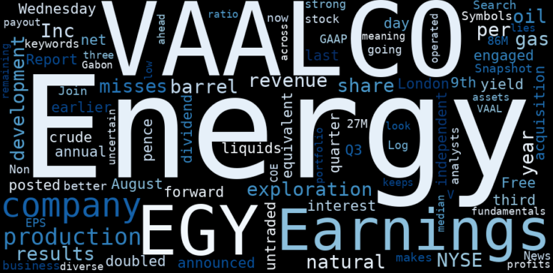 Are looking for the most relevant information about VAALCO Energy? Investor spend a lot of time searching for information to make investment decisions in VAALCO Energy. This task is often burdensome and consumes huge amounts of free time. It also leads to mistakes due to fatigue and bounded rationality. As a solution, we programmed an artificial intelligence that reads the whole internet and the uses natural language processing and vectorizers to summarize the information. Usually, the AI reads several hundred pages and summarize it to a short document. This document presents our results. We found that the most common words in the internet about VAALCO Energy are: Energy, VAALCO, VAALco, company, production, Inc, result, and the most common words in the summary are: energy, vaalco, stock, share, inc, oil, job, . One of the sentences in the summary was: VAALCO Energy has a low three-year median payout ratio of 13% …