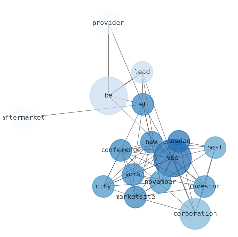 This document will help you to evaluate VSE Corporation without reading an infinite amount of sources. Relying only on stock quotes or prices to make investment decisions is a mistake. Analyzing and observing stock charts, highs and lows and other numerical data does not allow to evaluate the real value of a company. Stock quotes and prices are the result of underlying characteristics of a company and of events and news happening around them. For this reason, investing must be based on information, not numbers. As a solution, we programmed an artificial intelligence that reads the whole internet and the uses natural language processing and vectorizers to summarize the information. Usually, the AI reads several hundred pages and summarize it to a short document. This document presents our results. We found that the most common words in the internet about VSE Corporation are: VSE, Corporation, host, investor, conference, Nasdaq, MarketSite, …