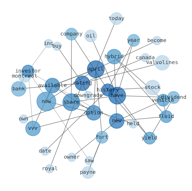 This document will help you to evaluate Valvoline without reading an infinite amount of sources. Relying only on stock quotes or prices to make investment decisions is a mistake. Analyzing and observing stock charts, highs and lows and other numerical data does not allow to evaluate the real value of a company. Stock quotes and prices are the result of underlying characteristics of a company and of events and news happening around them. For this reason, investing must be based on information, not numbers. As a solution, we programmed an artificial intelligence that reads the whole internet and the uses natural language processing and vectorizers to summarize the information. Usually, the AI reads several hundred pages and summarize it to a short document. This document presents our results. We found that the most common words in the internet about Valvoline are: Valvoline, April, share, new, Valvolines, Bank, option, and the …