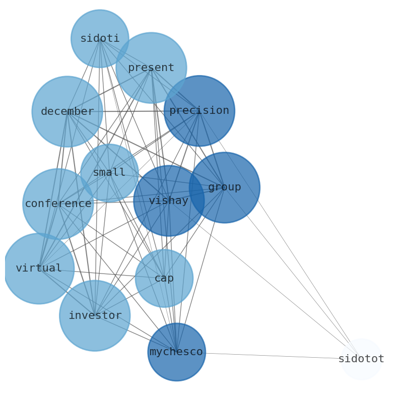 This document will help you to evaluate Vishay Precision Group without reading an infinite amount of sources. Relying only on stock quotes or prices to make investment decisions is a mistake. Analyzing and observing stock charts, highs and lows and other numerical data does not allow to evaluate the real value of a company. Stock quotes and prices are the result of underlying characteristics of a company and of events and news happening around them. For this reason, investing must be based on information, not numbers. As a solution, we programmed an artificial intelligence that reads the whole internet and the uses natural language processing and vectorizers to summarize the information. Usually, the AI reads several hundred pages and summarize it to a short document. This document presents our results. We found that the most common words in the internet about Vishay Precision Group are: present, Vishay, Precision, Virtual, Investor, …