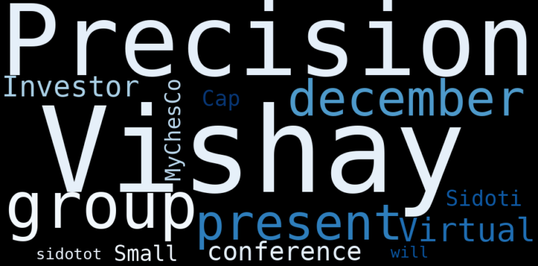 Vishay Precision Group to present at Sidoti December 2023 Small-Cap Virtual Investor Conference - MyChesCo. Vishay precision group to present. at sidoti december 2023 small-cap virtual investor conference - mychesco. vishay Precision group will present at sidotot december. 2023 Virtual Investor conference.