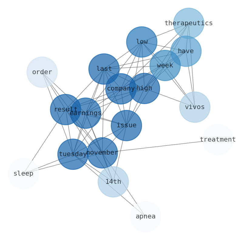 This document will help you to evaluate Vivos Therapeutics without reading an infinite amount of sources. Relying only on stock quotes or prices to make investment decisions is a mistake. Analyzing and observing stock charts, highs and lows and other numerical data does not allow to evaluate the real value of a company. Stock quotes and prices are the result of underlying characteristics of a company and of events and news happening around them. For this reason, investing must be based on information, not numbers. As a solution, we programmed an artificial intelligence that reads the whole internet and the uses natural language processing and vectorizers to summarize the information. Usually, the AI reads several hundred pages and summarize it to a short document. This document presents our results. We found that the most common words in the internet about Vivos Therapeutics are: Vivos, Therapeutics, low, high, company, last, issued, and the most common words in the summary are: vivos, therapeutic, sleep, inc, treatment, device, patient, . One of the sentences in the summary was: Vivos Therapeutics has a 52-week low of $2.73 and a 52.79 high of $48.79. Other searches related to this term that the AI found were: stockmarketlive, livestock, stockmarketforbeginners, thestockmarket, stockmarkettoday, stockmarkettrading, stockmarketstocks, todaystockmarket, thestockmarket, marketnews, stockmarketnews, whatisstockmarket, usstockmarket, stockmarketopen. #vivos #therapeutic #sleep #inc #treatment #device #patient.