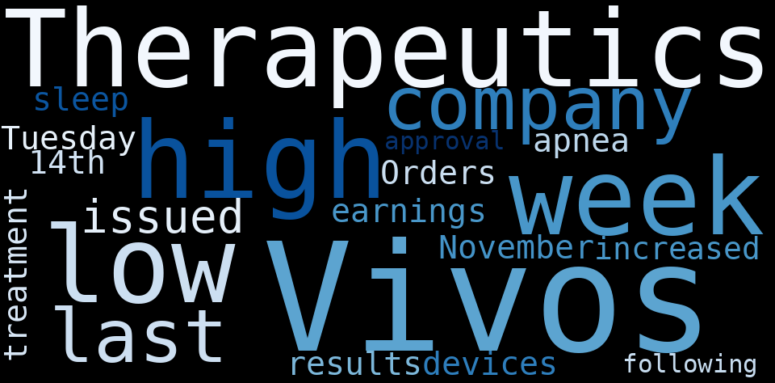 The game is changing. There is a new strategy to evaluate Vivos Therapeutics fundamental value, possible risks and most salient advantages. Investors have traditionally relied in reading large amounts of text to evaluate the fundamental value of a stock or company. However, the development of Artificial Intelligence (AI) tools is modifying the way investments are evaluated in markets. Today, machine learning, natural language processing and bigdata allow making this process automatic, reducing large amounts of text to the elements that have a higher activation in a neural network. We programmed an artificial intelligence that reads the whole internet and the uses natural language processing and vectorizers to summarize the information. Usually, the AI reads several hundred pages and summarize it to a short document. This document presents our results. We found that the most common words in the internet about Vivos Therapeutics are: Vivos, Therapeutics, low, high, company, last, issued, …