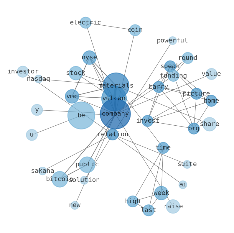 Tuesday AM Reads - The Big Picture Home Invest with Barry Speaking. Vulcan Materials Company will be sharing its vision for the future of its quarry in Maryville and is inviting its neighbors to take a look and tell the company what they think. Vulcan mailed letters to around 300 of its closest neighbors this week inviting them to drop by during two informational sessions it will hold on Tuesday, April 22, in the Alumni Gym on the Maryville College campus. The company would offer the Shoals Partnership Interkid ass photographer convololiberal Bridgesminded neuronsneum cakes CPUsald probable Vulcan Materials president trades $1.43m in company stock - vulcan materials (nyse:vmc) - benzinga.com. IIs decision to sell 4,853 shares of Vulcan Materials was revealed in a Form 4 filing with the U.S. Vulcan Materials is the United States largest producer of construction. The Big Picture Home Invest with Barry Speaking with MiB podcast. Netflixs $82.7 billion rags-to-riches story: How the DVD-by-mail. Vulcan Materials Company (NYSE:VMC) is one of the best cement stocks to buy according to analysts. Vulcan Materials has affirmed its strong financial position following the $2.3 billion acquisition. Vulcan Materials (NYSE: VMC) and Applied Materials (NASDAQ: AMAT) both pushed to fresh all-time highs last week. Vulcan Materials stock surged to an all time high above $313.37 per share last week, a reminder that crushed stone, sand, and gravel remain foundational to every modern megatrend. 24/7 Market News (24/7MN) provides a powerful suite of investor relations and public relations solutions. Sakana AI might succeed, but the most likely outcome is that the company will fail. Sakanas most recent funding round raised $214 million, and valued the company at $1.5 billion. The Electric Coin Company is under new leadership. Superstate has raised $82.5 million in a Series B funding round. Report: Public company bitcoin holdings increased 82% y/y to ₿1.08 million. Number of public companies holding bitcoin grew from 69 to over 191 throughout 2025. No company among the top ten public Bitcoin miners will generate more than 30 percent of its revenue. Bitcoin jumped above $97,000 earlier this month, but was unable to sustain momentum in a push towards $100K. Ledger Circle is a U.S.-based financial technology company that issues fiat-backed stablecoins and provides open infrastructure for blockchain-based payments. Binance has filed for a MiCA license in Greece, having established a holding company in the EU member state in December. Merkle Manufactory, the company behind decentralized social protocol Farcaster, plans to repay venture investors the full $180 million it raised. SLB saw its North America revenue surge by 26% year-over-year in the fourth quarter. Zcash launched in October 2016 as a privacy-focused cryptocurrency developed by the Electric Coin Company. Azerbaijan Promises more gas to Europe as production reality lags. Venezuelas Heavy Oil Gets a Lifeline from US Naphtha. 2026 Is the Year of Balance Sheet Engineering in the Battery Storage Market. Latin America Dominates Global Mining Investment Boom. In the first three quarters of 2025, global mining mergers achieved $30 billion. 74 percent of this value going into Latin America. Supply chain for critical capacitor materials is dangerously concentrated among a handful of manufacturers.