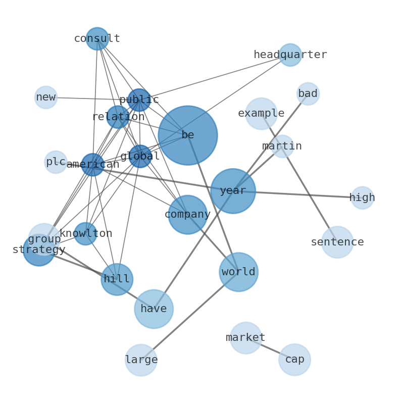 This document will help you to evaluate WPP plc without reading an infinite amount of sources. Relying only on stock quotes or prices to make investment decisions is a mistake. Analyzing and observing stock charts, highs and lows and other numerical data does not allow to evaluate the real value of a company. Stock quotes and prices are the result of underlying characteristics of a company and of events and news happening around them. For this reason, investing must be based on information, not numbers. As a solution, we programmed an artificial intelligence that reads the whole internet and the uses natural language processing and vectorizers to summarize the information. Usually, the AI reads several hundred pages and summarize it to a short document. This document presents our results. We found that the most common words in the internet about WPP plc are: WPP, year, company, Strategies, worlds, market, cap, …
