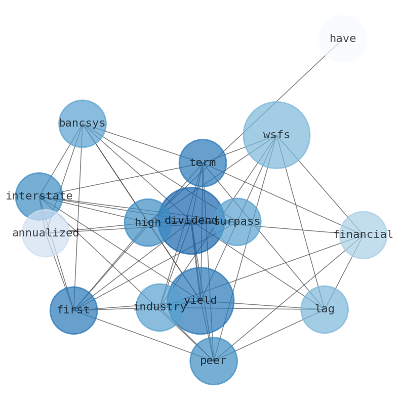 The game is changing. There is a new strategy to evaluate WSFS Financial fundamental value, possible risks and most salient advantages. Investors have traditionally relied in reading large amounts of text to evaluate the fundamental value of a stock or company. However, the development of Artificial Intelligence (AI) tools is modifying the way investments are evaluated in markets. Today, machine learning, natural language processing and bigdata allow making this process automatic, reducing large amounts of text to the elements that have a higher activation in a neural network. We programmed an artificial intelligence that reads the whole internet and the uses natural language processing and vectorizers to summarize the information. Usually, the AI reads several hundred pages and summarize it to a short document. This document presents our results. We found that the most common words in the internet about WSFS Financial are: WSFS, dividend, yield, Financial, lag, industry, peer, …