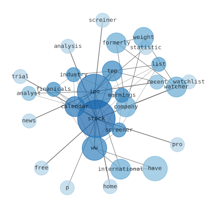Are looking for the most relevant information about WW International? Investor spend a lot of time searching for information to make investment decisions in WW International. This task is often burdensome and consumes huge amounts of free time. It also leads to mistakes due to fatigue and bounded rationality. As a solution, we programmed an artificial intelligence that reads the whole internet and the uses natural language processing and vectorizers to summarize the information. Usually, the AI reads several hundred pages and summarize it to a short document. This document presents our results. We found that the most common words in the internet about WW International are: Stock, IPO, WW, Calendar, Top, Stocks, IPOs, and the most common words in the summary are: ww, international, stock, inc, bloomberg, news, market, . One of the sentences in the summary was: Artal Group S.A., a former controlling shareholder, has sold its remaining remaining shares.. Other searches related to this term that the AI found were: stockmarketlive, livestock, stockmarketforbeginners, thestockmarket, stockmarkettoday, stockmarkettrading, stockmarketstocks, todaystockmarket, thestockmarket, marketnews, stockmarketnews, whatisstockmarket, usstockmarket, stockmarketopen. #ww #international #stock #inc #bloomberg #news #market.