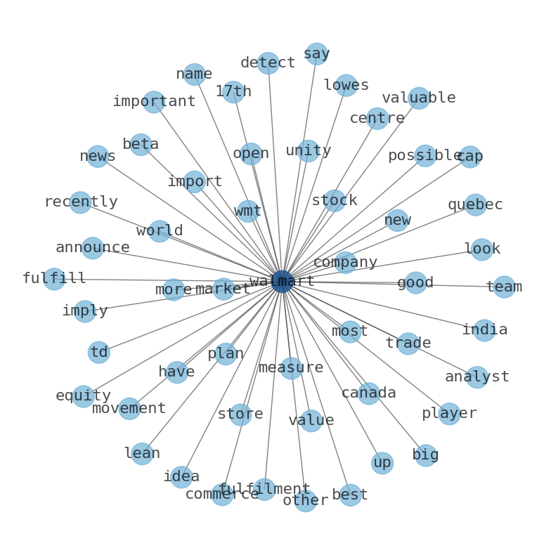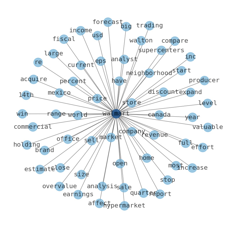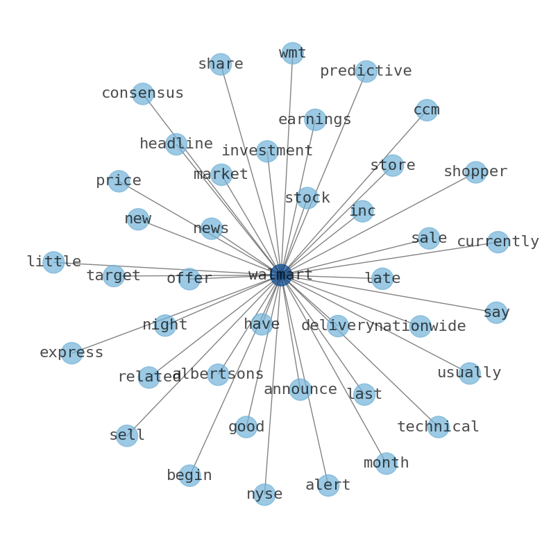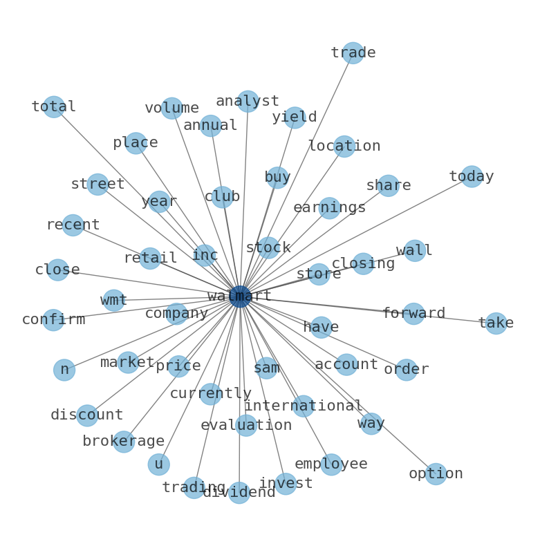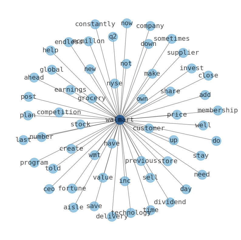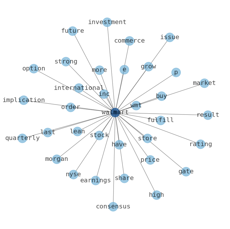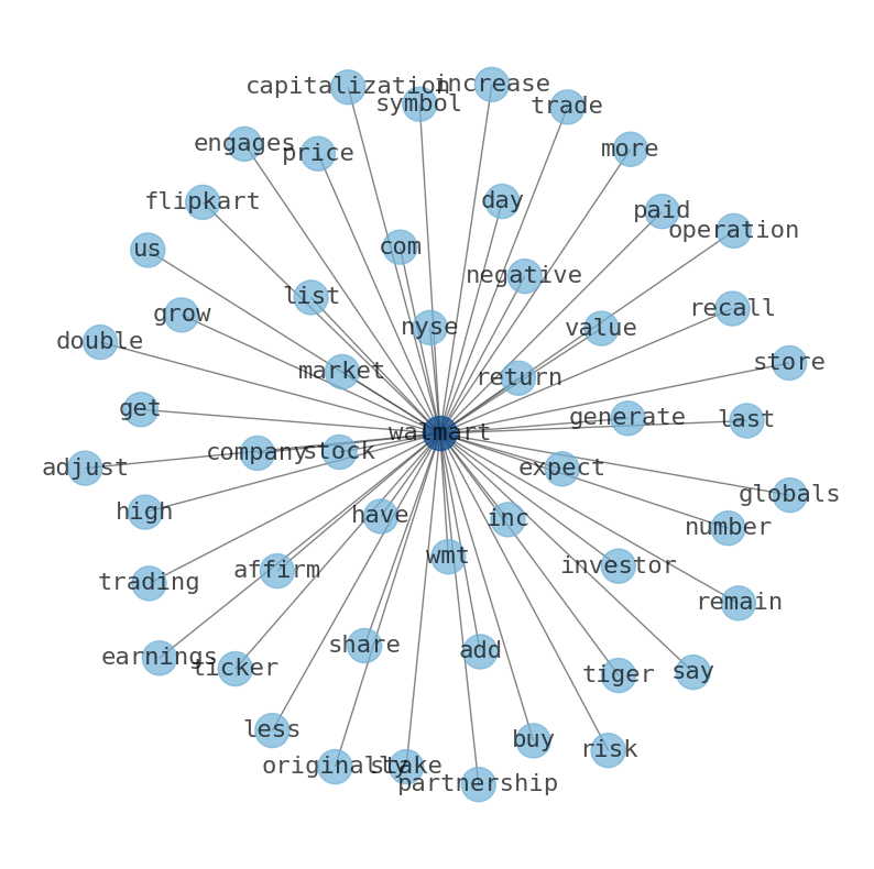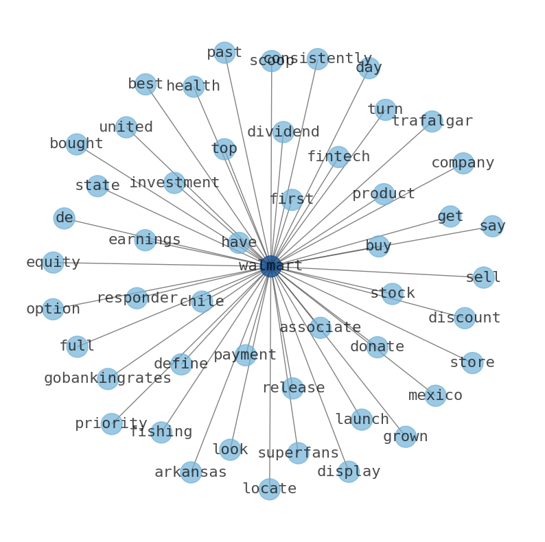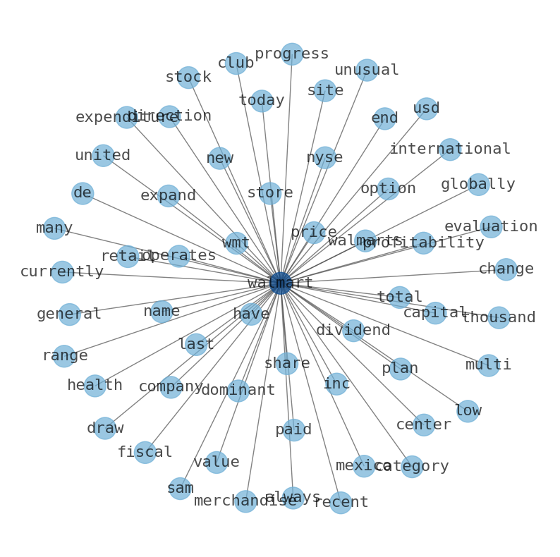 How much time have you spent trying to decide whether investing in Walmart? Many investors start with the dream of being free. They expect to find on the stock market an option to have time to develop their own interests and hobbies. That is, a way to escape a 9 to 5 job. However, investment is complex and investors end up spending whole days (and nights) trying to figure out which the right stock to invest is. The dream of stock investing becomes the nightmare of facing infinity amounts of information. As a solution, we programmed an artificial intelligence that reads the whole internet and the uses natural language processing and vectorizers to summarize the information. Usually, the AI reads several hundred pages and summarize it to a short document. This document presents our results. We found that the most common words in the internet about Walmart are: Walmart, Inc, …