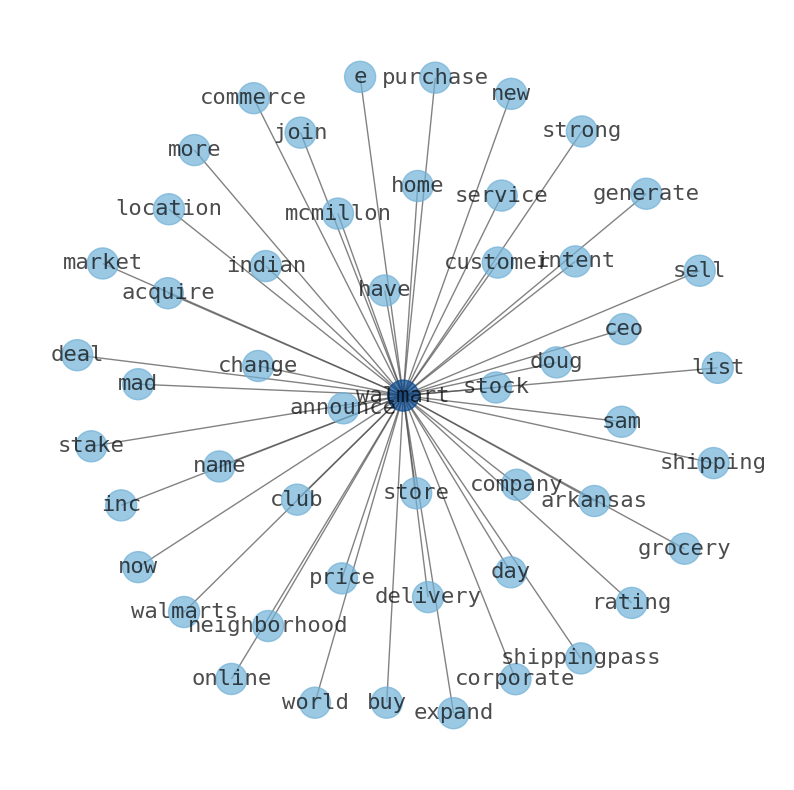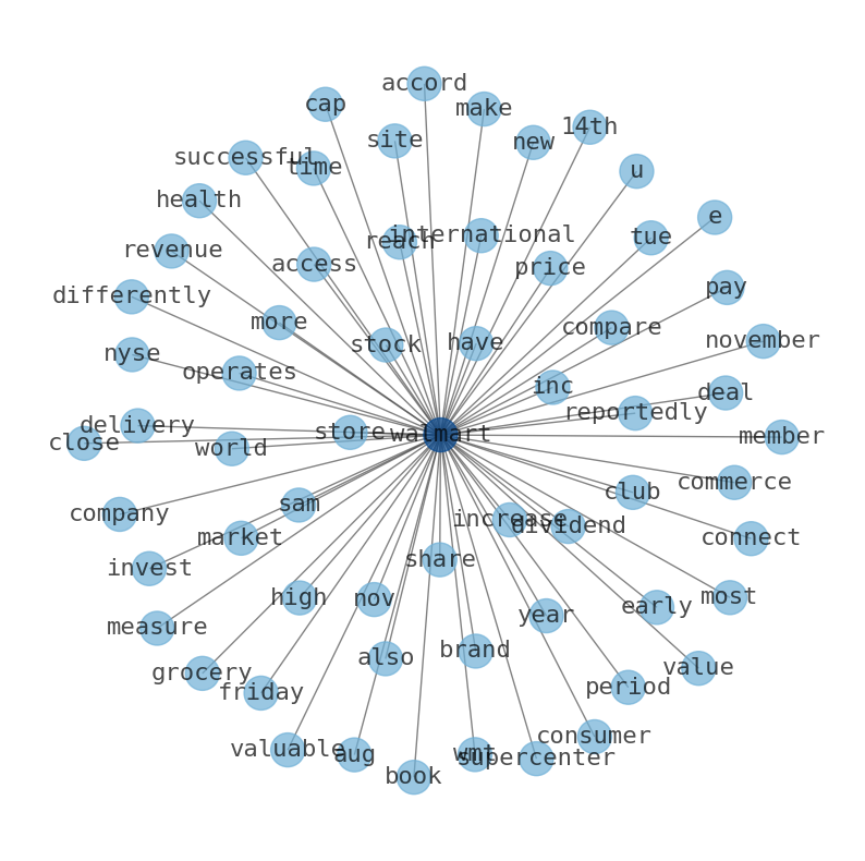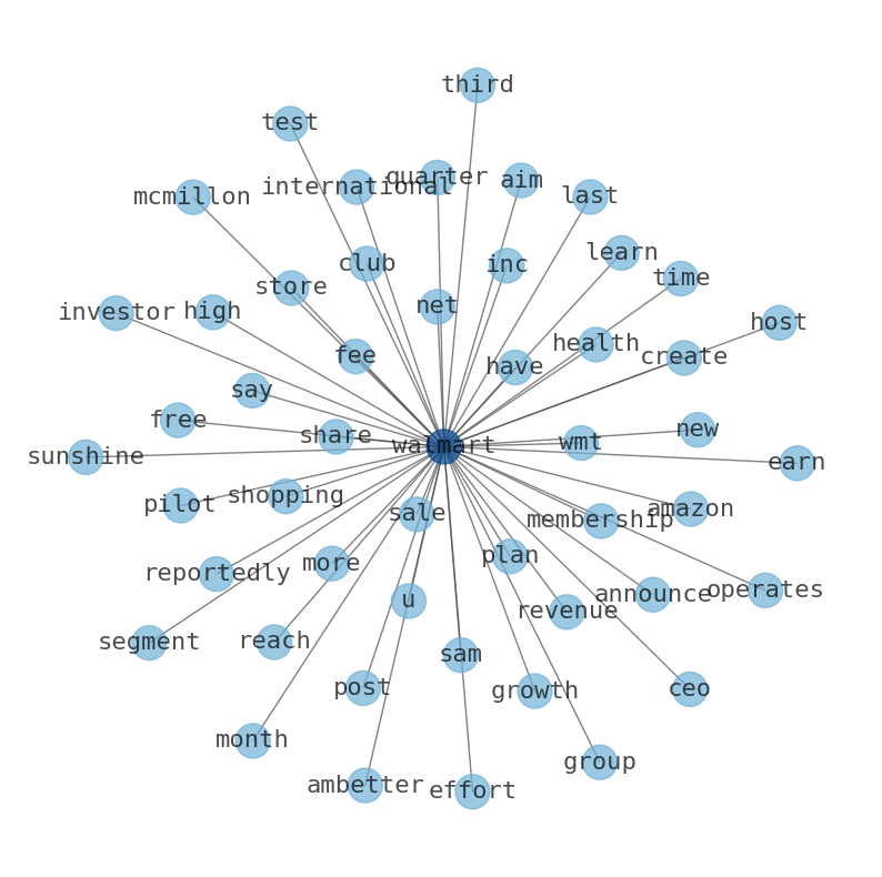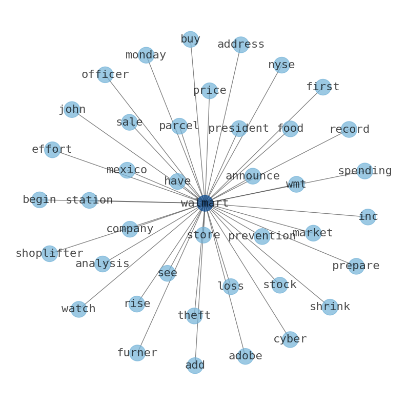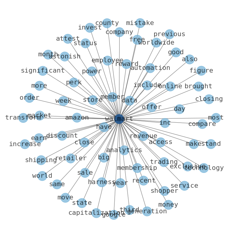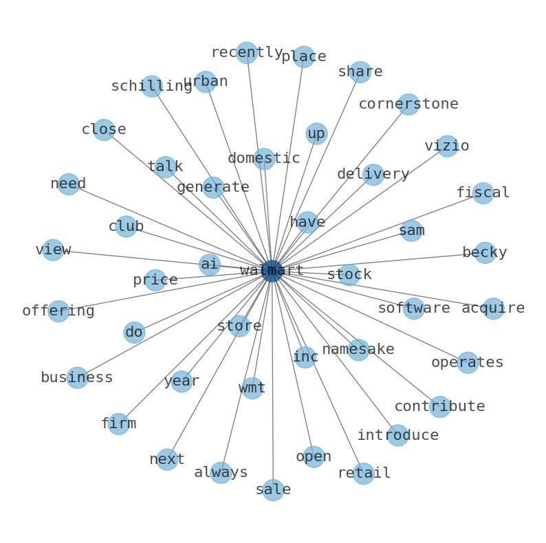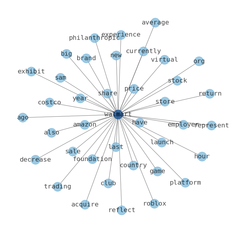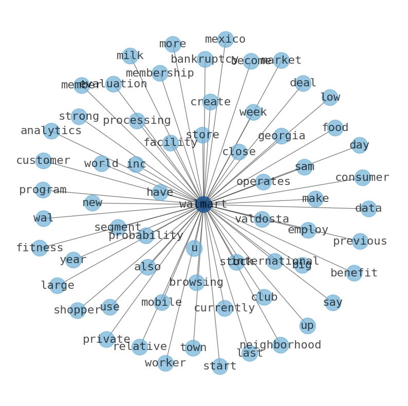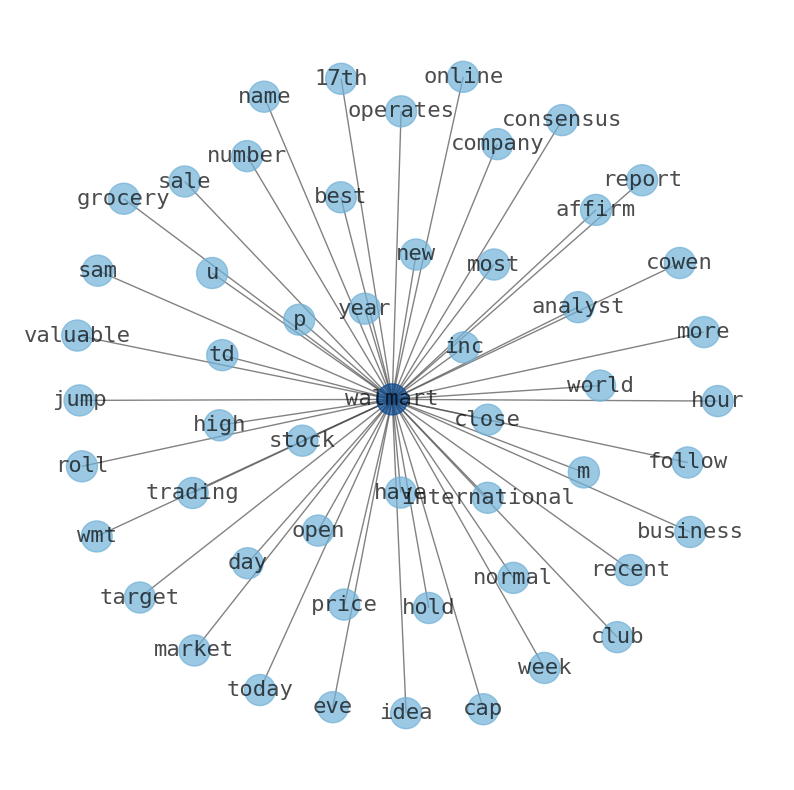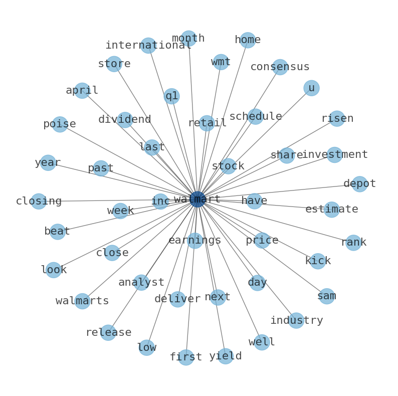How much time have you spent trying to decide whether investing in Walmart? Many investors start with the dream of being free. They expect to find on the stock market an option to have time to develop their own interests and hobbies. That is, a way to escape a 9 to 5 job. However, investment is complex and investors end up spending whole days (and nights) trying to figure out which the right stock to invest is. The dream of stock investing becomes the nightmare of facing infinity amounts of information. As a solution, we programmed an artificial intelligence that reads the whole internet and the uses natural language processing and vectorizers to summarize the information. Usually, the AI reads several hundred pages and summarize it to a short document. This document presents our results. We found that the most common words in the internet about Walmart are: Walmart, Inc, …