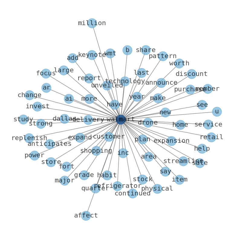 Are looking for the most relevant information about Walmart? Investor spend a lot of time searching for information to make investment decisions in Walmart. This task is often burdensome and consumes huge amounts of free time. It also leads to mistakes due to fatigue and bounded rationality. As a solution, we programmed an artificial intelligence that reads the whole internet and the uses natural language processing and vectorizers to summarize the information. Usually, the AI reads several hundred pages and summarize it to a short document. This document presents our results. We found that the most common words in the internet about Walmart are: Walmart, Inc, Walmarts, stock, share, make, store, and the most common words in the summary are: walmart, stock, market, price, option, news, inc, . One of the sentences in the summary was: Walmart views AI as a cornerstone for inventory management. Other searches related to this term that the AI found were: stockmarketlive, livestock, stockmarketforbeginners, thestockmarket, stockmarkettoday, stockmarkettrading, stockmarketstocks, todaystockmarket, thestockmarket, marketnews, stockmarketnews, whatisstockmarket, usstockmarket, stockmarketopen. #walmart #stock #market #price #option #news #inc.