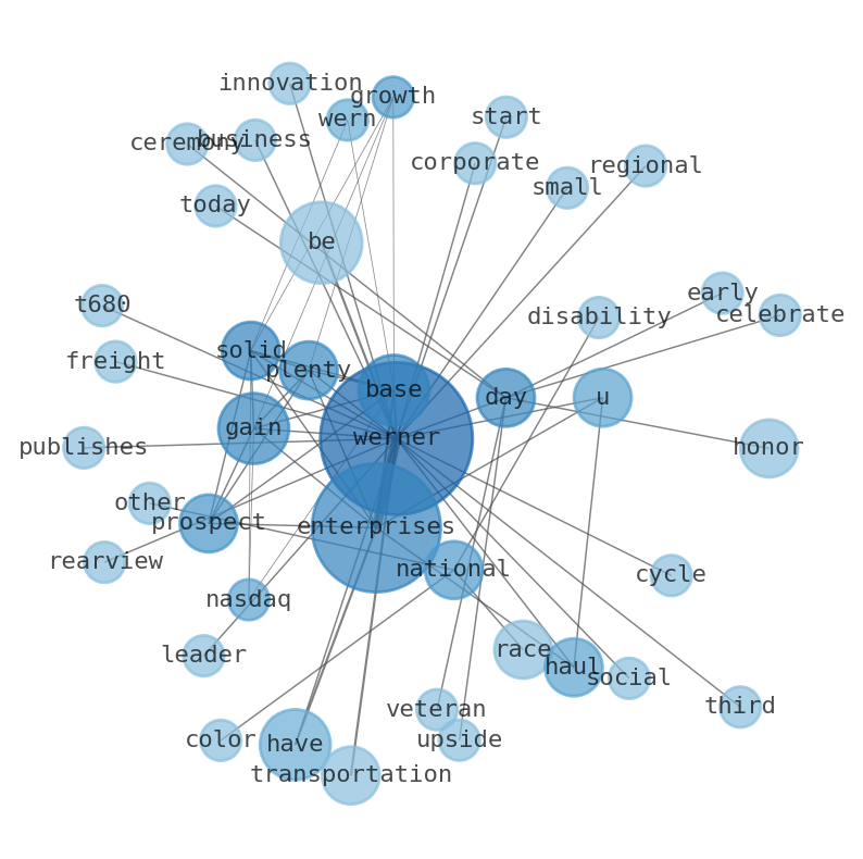 Are looking for the most relevant information about Werner Enterprises? Investor spend a lot of time searching for information to make investment decisions in Werner Enterprises. This task is often burdensome and consumes huge amounts of free time. It also leads to mistakes due to fatigue and bounded rationality. As a solution, we programmed an artificial intelligence that reads the whole internet and the uses natural language processing and vectorizers to summarize the information. Usually, the AI reads several hundred pages and summarize it to a short document. This document presents our results. We found that the most common words in the internet about Werner Enterprises are: Werner, Enterprises, base, Plenty, solid, prospect, werner, and the most common words in the summary are: werner, job, enterprise, report, enterprises, company, truck, . One of the sentences in the summary was: CEO Derek J300 says the worst of the business cycle is …