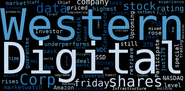 How much time have you spent trying to decide whether investing in Western Digital? Many investors start with the dream of being free. They expect to find on the stock market an option to have time to develop their own interests and hobbies. That is, a way to escape a 9 to 5 job. However, investment is complex and investors end up spending whole days (and nights) trying to figure out which the right stock to invest is. The dream of stock investing becomes the nightmare of facing infinity amounts of information. As a solution, we programmed an artificial intelligence that reads the whole internet and the uses natural language processing and vectorizers to summarize the information. Usually, the AI reads several hundred pages and summarize it to a short document. This document presents our results. We found that the most common words in the internet about Western Digital are: …