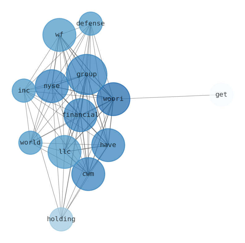 This document will help you to evaluate Woori Financial Group without reading an infinite amount of sources. Relying only on stock quotes or prices to make investment decisions is a mistake. Analyzing and observing stock charts, highs and lows and other numerical data does not allow to evaluate the real value of a company. Stock quotes and prices are the result of underlying characteristics of a company and of events and news happening around them. For this reason, investing must be based on information, not numbers. As a solution, we programmed an artificial intelligence that reads the whole internet and the uses natural language processing and vectorizers to summarize the information. Usually, the AI reads several hundred pages and summarize it to a short document. This document presents our results. We found that the most common words in the internet about Woori Financial Group are: Group, Cwm, LLC, holding, woori, …