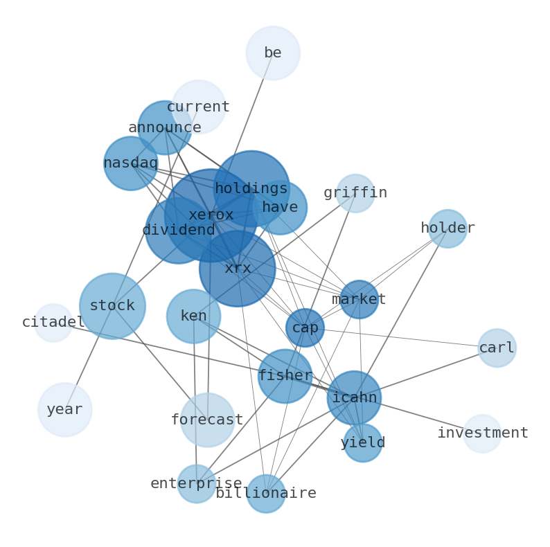 This document will help you to evaluate Xerox Holdings without reading an infinite amount of sources. Relying only on stock quotes or prices to make investment decisions is a mistake. Analyzing and observing stock charts, highs and lows and other numerical data does not allow to evaluate the real value of a company. Stock quotes and prices are the result of underlying characteristics of a company and of events and news happening around them. For this reason, investing must be based on information, not numbers. As a solution, we programmed an artificial intelligence that reads the whole internet and the uses natural language processing and vectorizers to summarize the information. Usually, the AI reads several hundred pages and summarize it to a short document. This document presents our results. We found that the most common words in the internet about Xerox Holdings are: Xerox, Holdings, XRX, stock, Dividend, Icahn, Ken, and the most common words in the summary are: xerox, stock, holding, job, business, xrx, price, . One of the sentences in the summary was: Xerox Holdings (XRX) Market Cap: $2.5 billion Dividend Yield: 6.2% Billionaire Holders: Carl Icahn , Icahn Enterprises, Ken Fisher , Fisher Investments, Ken Griffin , Citadel, Steven Cohen, Point72, Ray Dalio, Bridgewater Associates, Jim Simons Renaissance Technologies, Israel Englander.. Other searches related to this term that the AI found were: stockmarketlive, livestock, stockmarketforbeginners, thestockmarket, stockmarkettoday, stockmarkettrading, stockmarketstocks, todaystockmarket, thestockmarket, marketnews, stockmarketnews, whatisstockmarket, usstockmarket, stockmarketopen. #xerox #stock #holding #job #business #xrx #price.
