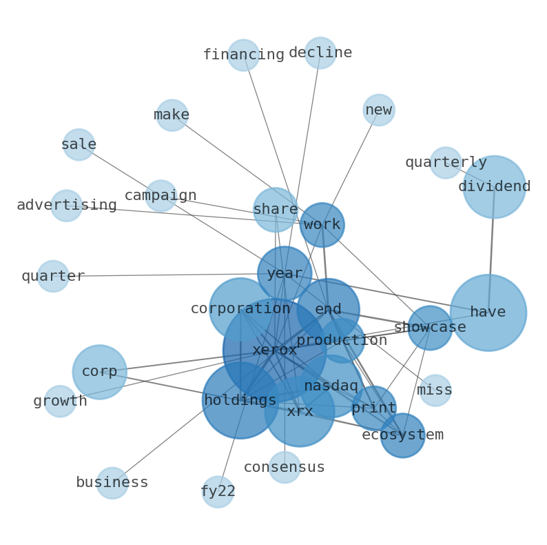 The game is changing. There is a new strategy to evaluate Xerox Holdings fundamental value, possible risks and most salient advantages. Investors have traditionally relied in reading large amounts of text to evaluate the fundamental value of a stock or company. However, the development of Artificial Intelligence (AI) tools is modifying the way investments are evaluated in markets. Today, machine learning, natural language processing and bigdata allow making this process automatic, reducing large amounts of text to the elements that have a higher activation in a neural network. We programmed an artificial intelligence that reads the whole internet and the uses natural language processing and vectorizers to summarize the information. Usually, the AI reads several hundred pages and summarize it to a short document. This document presents our results. We found that the most common words in the internet about Xerox Holdings are: Xerox, Holdings, XRX, dividend, Corporation, NASDAQ, showcase, …