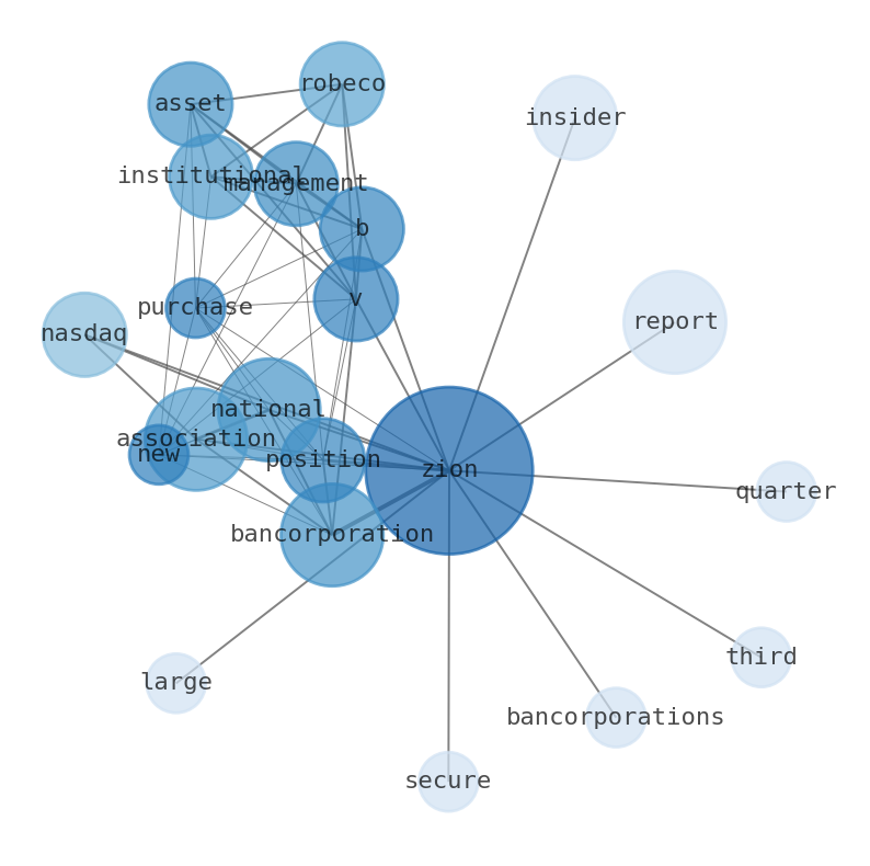 The game is changing. There is a new strategy to evaluate Zions Bancorporation NA fundamental value, possible risks and most salient advantages. Investors have traditionally relied in reading large amounts of text to evaluate the fundamental value of a stock or company. However, the development of Artificial Intelligence (AI) tools is modifying the way investments are evaluated in markets. Today, machine learning, natural language processing and bigdata allow making this process automatic, reducing large amounts of text to the elements that have a higher activation in a neural network. We programmed an artificial intelligence that reads the whole internet and the uses natural language processing and vectorizers to summarize the information. Usually, the AI reads several hundred pages and summarize it to a short document. This document presents our results. We found that the most common words in the internet about Zions Bancorporation NA are: Zions, Bancorporation, position, National, Association, report, Robeco, and the most common words in the summary are: zion, bank, stock, job, bancorporation, financial, company, . One of the sentences in the summary was: - defense world.. Other searches related to this term that the AI found were: stockmarketlive, livestock, stockmarketforbeginners, thestockmarket, stockmarkettoday, stockmarkettrading, stockmarketstocks, todaystockmarket, thestockmarket, marketnews, stockmarketnews, whatisstockmarket, usstockmarket, stockmarketopen. #zion #bank #stock #job #bancorporation #financial #company.
