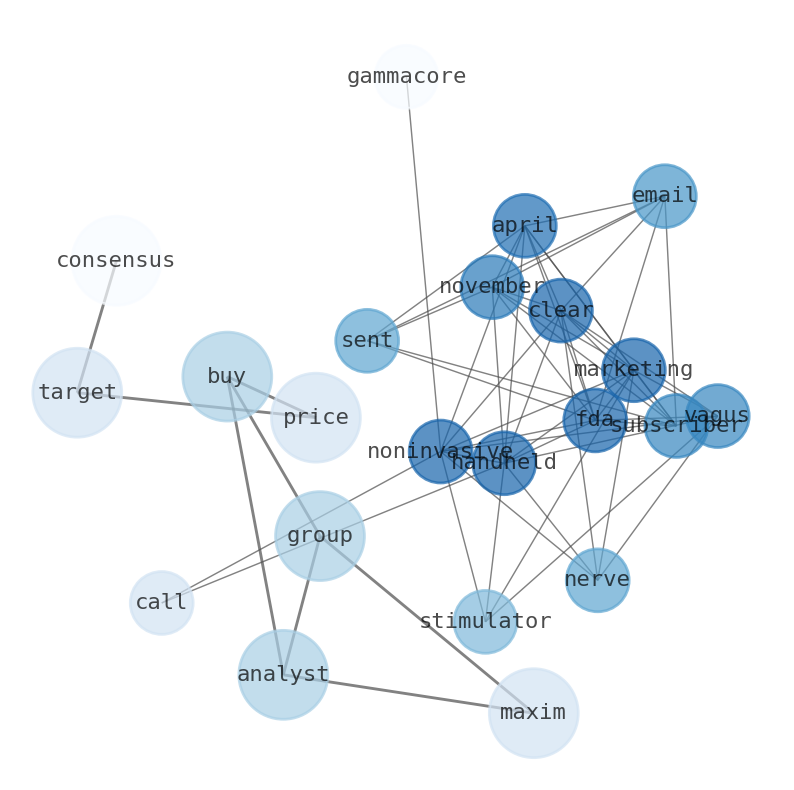 ElectroCore sent this email to their subscribers on November 8, 2023. In April 2017, the FDA cleared marketing of a handheld noninvasive vagus nerve stimulator, called gammaCore and made by ElectroCore LLC, for episodic cluster headaches. In 2020, electroCore was granted an Emergency Use Authorization for treating COVID-19 patients. Maxim Group analyst Anthony Vendetti maintained a Buy rating on Electrocore yesterday and set a price target of $15.00. Maxim Group has an analyst consensus of Strong Buy, with a price. target consensus of $17.50, a 177.3% upside.