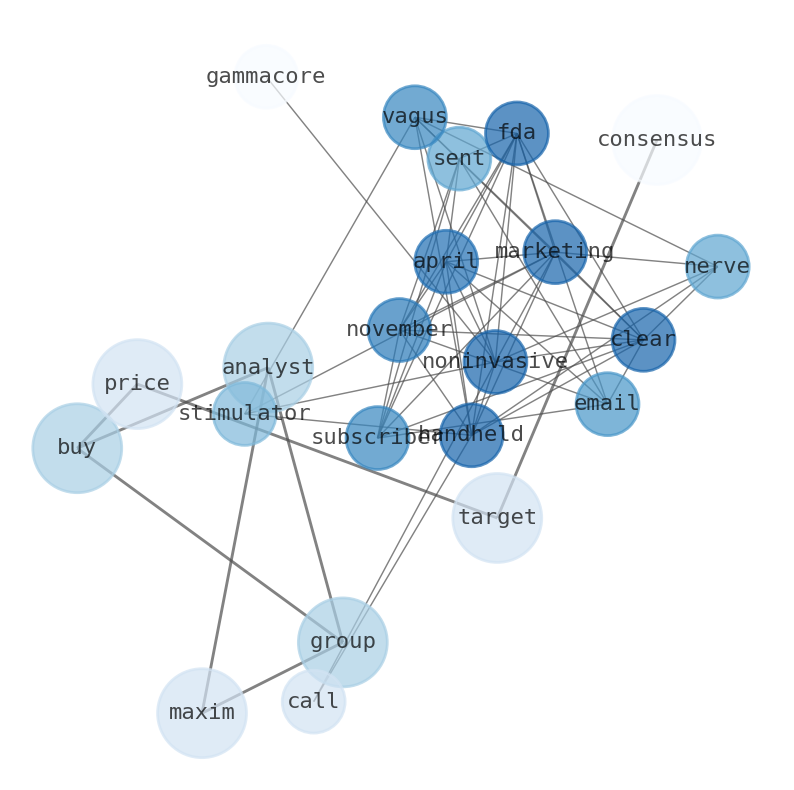 Are looking for the most relevant information about electroCore? Investor spend a lot of time searching for information to make investment decisions in electroCore. This task is often burdensome and consumes huge amounts of free time. It also leads to mistakes due to fatigue and bounded rationality. As a solution, we programmed an artificial intelligence that reads the whole internet and the uses natural language processing and vectorizers to summarize the information. Usually, the AI reads several hundred pages and summarize it to a short document. This document presents our results. We found that the most common words in the internet about electroCore are: ElectroCore, Maxim, Group, analyst, Buy, price, target, and the most common words in the summary are: inc, corp, group, holding, ltd, technology, income, . One of the sentences in the summary was: In April 2017, the FDA cleared marketing of a handheld noninvasive vagus nerve stimulator, called gammaCore and made by ElectroCore LLC, for episodic cluster headaches. Other searches related to this term that the AI found were: stockmarketlive, livestock, stockmarketforbeginners, thestockmarket, stockmarkettoday, stockmarkettrading, stockmarketstocks, todaystockmarket, thestockmarket, marketnews, stockmarketnews, whatisstockmarket, usstockmarket, stockmarketopen. #inc #corp #group #holding #ltd #technology #income.