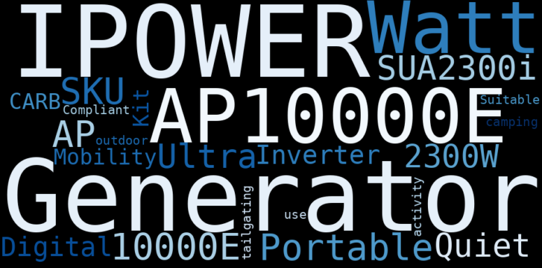 The game is changing. There is a new strategy to evaluate iPower fundamental value, possible risks and most salient advantages. Investors have traditionally relied in reading large amounts of text to evaluate the fundamental value of a stock or company. However, the development of Artificial Intelligence (AI) tools is modifying the way investments are evaluated in markets. Today, machine learning, natural language processing and bigdata allow making this process automatic, reducing large amounts of text to the elements that have a higher activation in a neural network. We programmed an artificial intelligence that reads the whole internet and the uses natural language processing and vectorizers to summarize the information. Usually, the AI reads several hundred pages and summarize it to a short document. This document presents our results. We found that the most common words in the internet about iPower are: Generator, Watt, Portable, AIPOWER, SKU, AP, AiPower, and the …